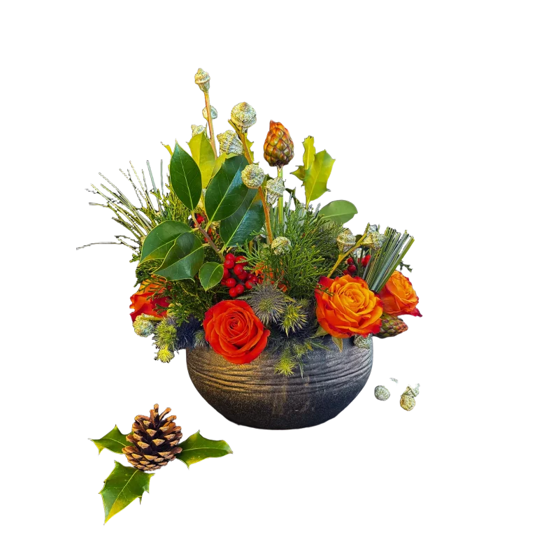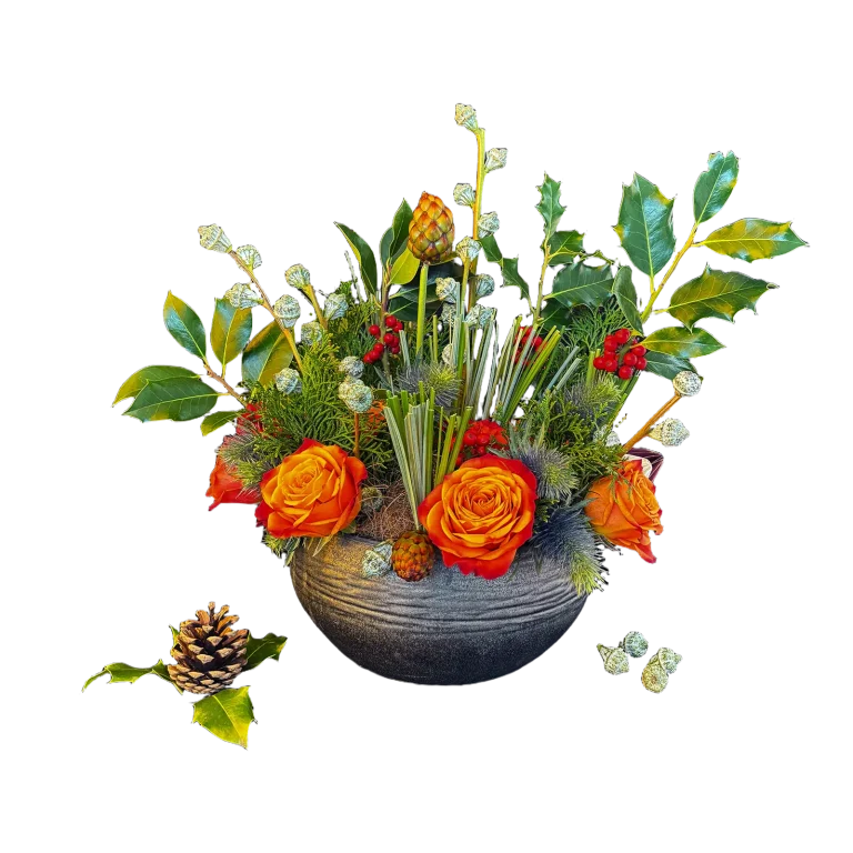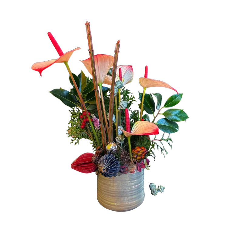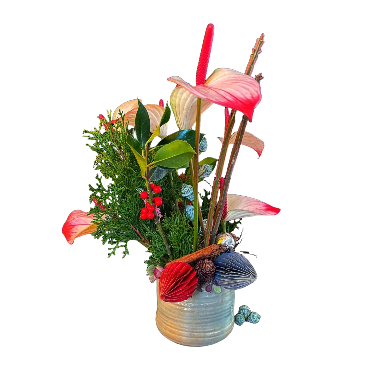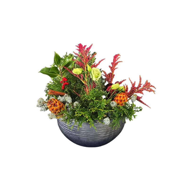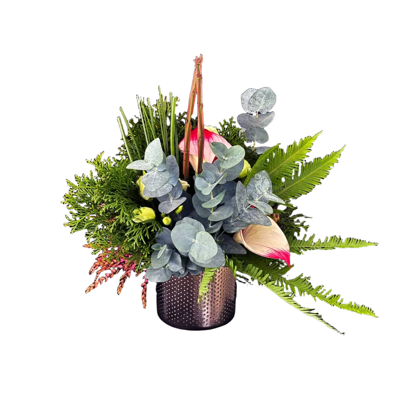 A contemporary botanical arrangement that honors nature’s ancestral beauty through a sculptural blend of proteas, organic textures, and earthy hues. Designed with a strong spiritual presence, it celebrates the connection to the earth and the art of blooming with intention. Every detail evokes balance and a timeless, wild elegance, making it an ideal centerpiece or a deeply meaningful gift.
